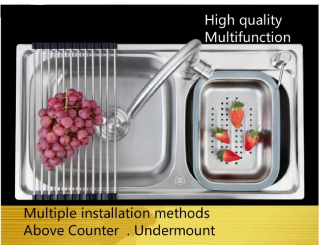 Product Name: Free Shipping Household Vogue Multifunction Individuality Kitchen Double Groove Sink 304 Stainless Steel Hot Sell 81x43 CM