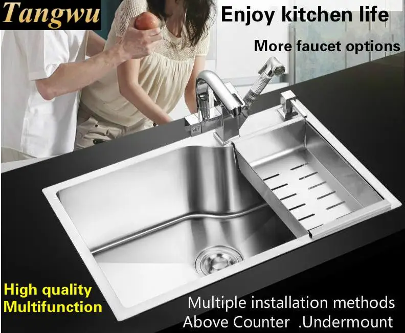 Best . (0% Off) Buy Free Shipping Apartment Kitchen Manual Sink Single Trough Wash Vegetables 304 Stainless Steel Hot Sell Big 65x43/68x46/75x45 CM Price Online.