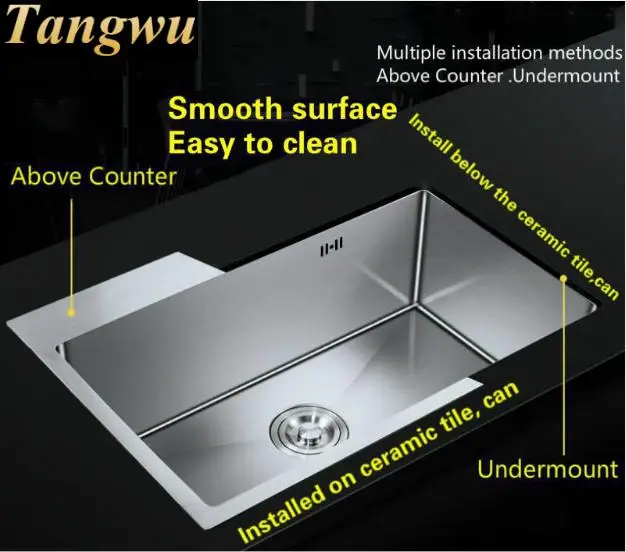 Product Name: Free Shipping Apartment Luxury Kitchen Manual Sink Single Trough Do The Dishes 304 Stainless Steel Hot Sell Large 680x450 MM