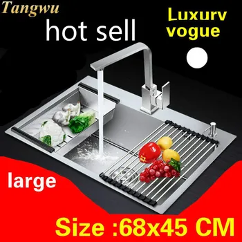 Special Offer Free Shipping Apartment Luxury Kitchen Manual Sink Single Trough Do The Dishes 304 Stainless Steel Hot Sell Large 680x450 MM Discount 0% Today!