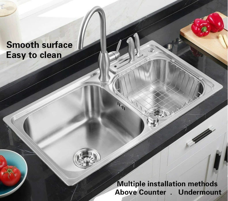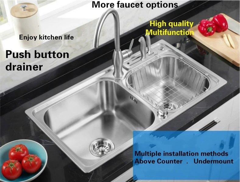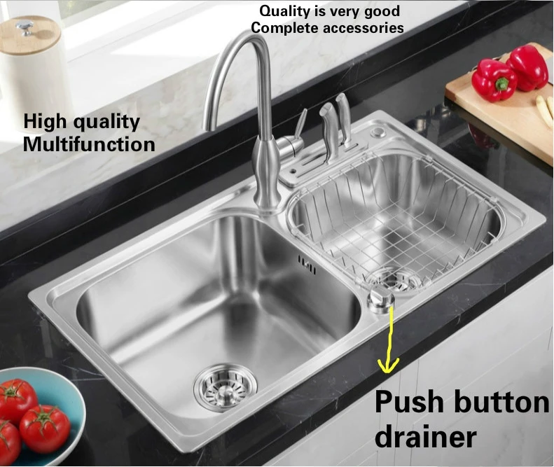 Best . (0% Off) Buy Free Shipping Apartment Luxury Push-button Drainer Kitchen Double Groove Sink Standard 304 Stainless Steel Hot Sell 780x430 MM Cheap Online.