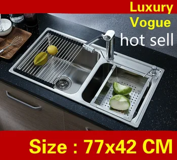 Product Name: Free Shipping Apartment Vogue Wash Vegetables Multifunction Kitchen Double Groove Sink 304 Stainless Steel 77x42 CM