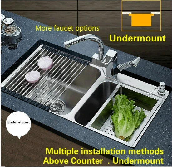 Best . (0% Off) Buy Free Shipping Apartment Vogue Wash Vegetables Multifunction Kitchen Double Groove Sink 304 Stainless Steel 77x42 CM Cheap Online.