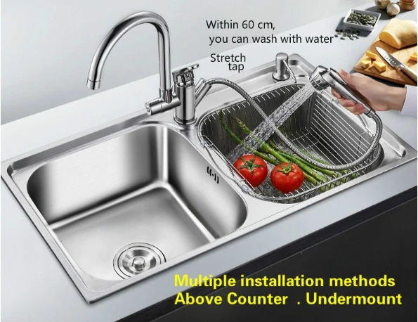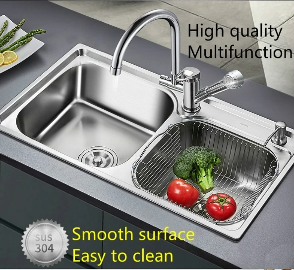 Best . (0% Off) Buy Free Shipping Food Grade 304 Stainless Steel Hot Sell Kitchen Sink 0.8 Mm Thick Normal Double Trough Do The Dishes 78 X43 CM Price Online.