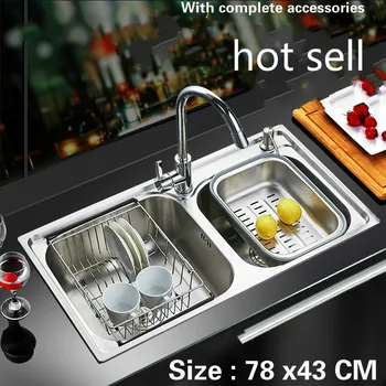 Product Name: Free Shipping Food Grade 304 Stainless Steel Hot Sell Kitchen Sink 0.8 Mm Thick Normal Double Trough Do The Dishes 78 X43 CM