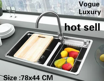 Product Name: Free Shipping Home Vogue Wash Vegetables Kitchen Double Groove Sink Luxury 304 Stainless Steel 780x440 MM