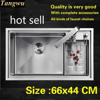 Product Name: Free Shipping Hot Sell Standard Multifunction Kitchen Manual Sink Single Trough Durable 304 Food Grade Stainless Steel 66x44 CM