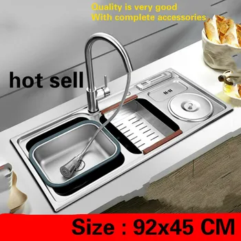 Special Offer Free Shipping Household Luxury Big Kitchen Double Groove Sink Food Grade 304 Stainless Steel Standard Hot Sell 920x450 MM Discount 0% Today!