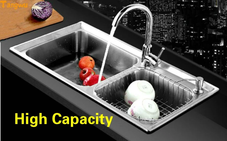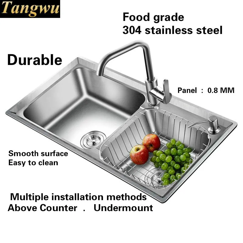 Special Offer Free Shipping Large Kitchen Sink 0.8 Mm Thick Food Grade 304 Stainless Steel Normal Double - Tank Hot Sell 810x430 MM Discount 0% Today!