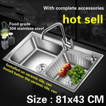 Product Name: Free Shipping Large Kitchen Sink 0.8 Mm Thick Food Grade 304 Stainless Steel Normal Double - Tank Hot Sell 810x430 MM