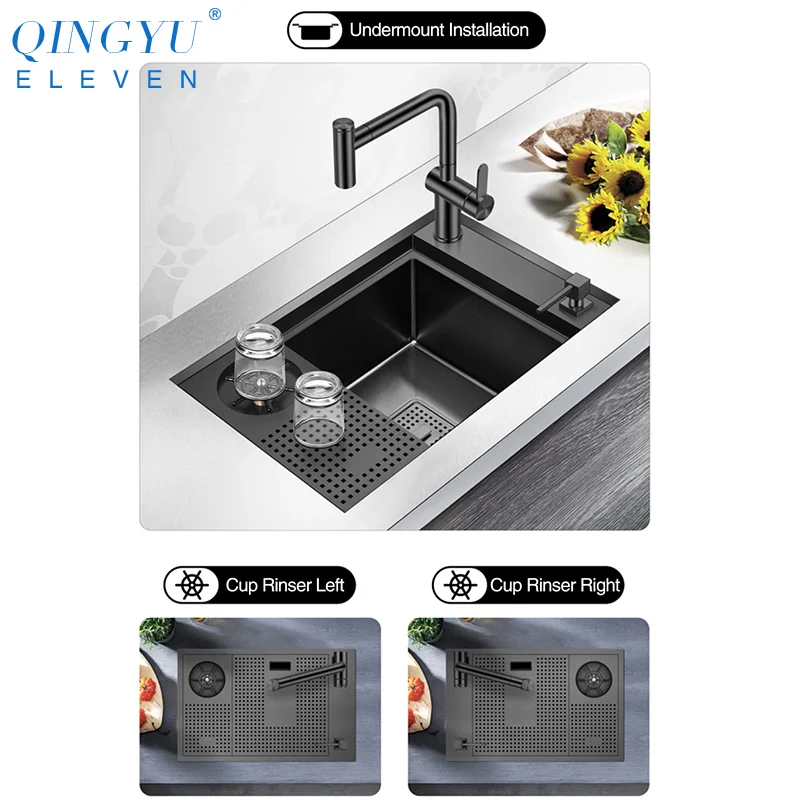 Best . (50% Off) Buy Nanometer Cup Rinser Kitchen Sink 304 Stainless Steel 4mm Thickness Sink High Pressure Cup Washer Bar Counter Kitchen Sink Cheap Online.