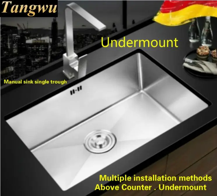 Best . (0% Off) Buy Free Shipping Apartment High Quality Large Kitchen Manual Sink Single Trough Do The Dishes 304 Stainless Steel Hot Sell 68x43 CM Price Online.