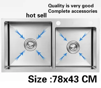 Product Name: Free Shipping Apartment Large Kitchen Manual Sink Double Groove Luxurious Food Grade 304 Stainless Steel Hot Sell 78x43 CM