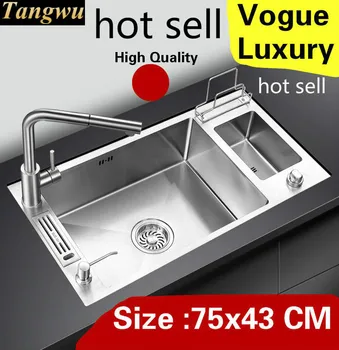 Product Name: Free Shipping Apartment Luxury Kitchen Manual Sink Single Trough Vogue Do The Dishes 304 Stainless Steel Hot Sell 750x430 MM