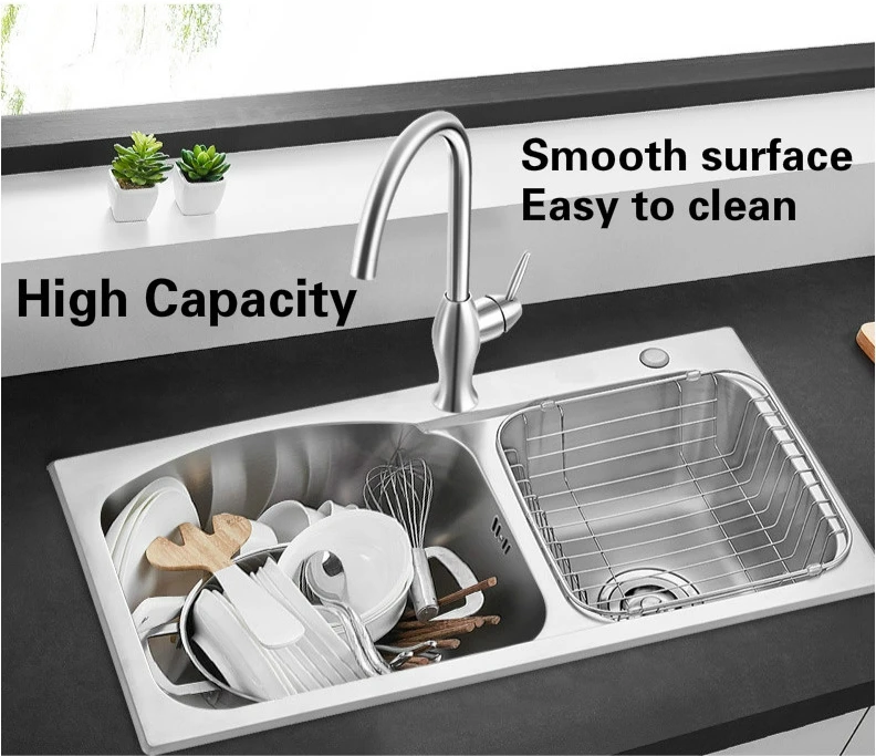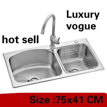 Product Name: Free Shipping Apartment Mini Kitchen Double Groove Sink Luxury Do The Dishes Durable 304 Stainless Steel Hot Sell 75x41 CM