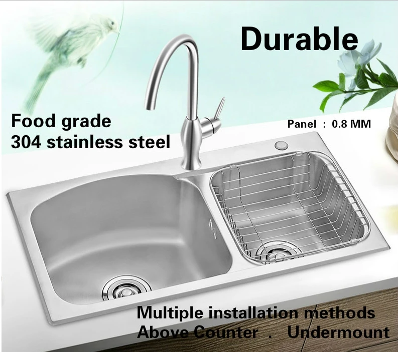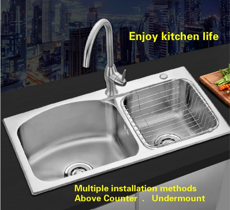 Best . (0% Off) Buy Free Shipping Apartment Mini Kitchen Double Groove Sink Luxury Do The Dishes Durable 304 Stainless Steel Hot Sell 75x41 CM Cheap Online.