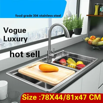 Product Name: Free Shipping Apartment Wash Vegetables High Capacity Kitchen Double Groove Sink Standard 304 Stainless Steel 78x44/81x47 CM