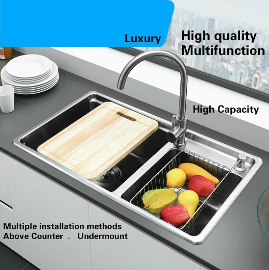 Best . (0% Off) Buy Free Shipping Apartment Wash Vegetables High Capacity Kitchen Double Groove Sink Standard 304 Stainless Steel 78x44/81x47 CM Price Online.