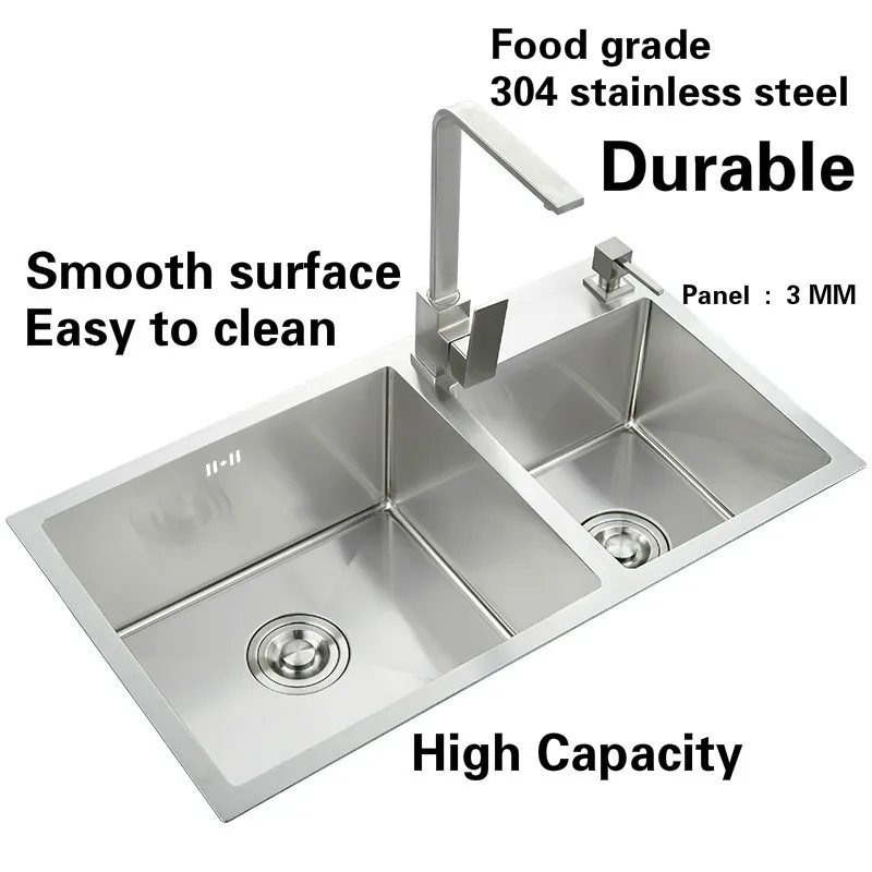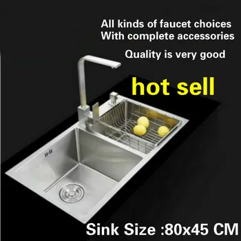 Special Offer Free Shipping Fashion Big Kitchen Sink Durable 304 Stainless Steel 3 Mm Hand Made Double Groove Hot Sell 80x45 CM Discount 0% Today!