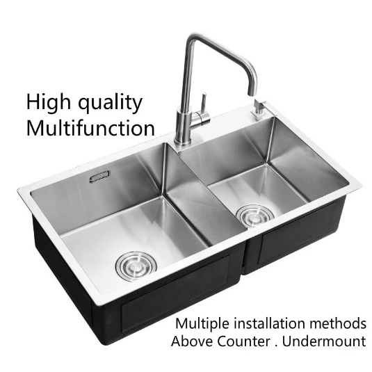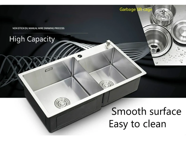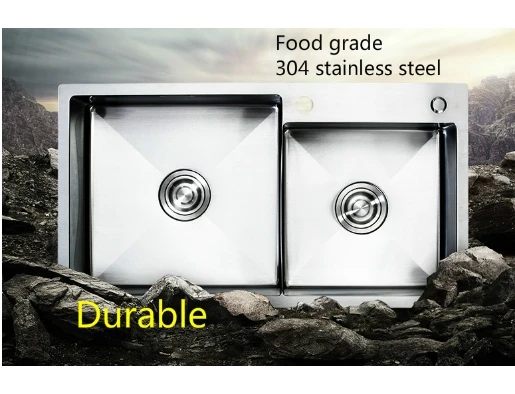Product Name: Free Shipping Fashion Standard Big Kitchen Manual Sink Double Groove Durable Stainless Steel Hot Selling 72x41/78x43/82x45 CM