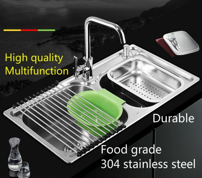 Best . (0% Off) Buy Free Shipping High Capacity Wash Vegetables Vogue Kitchen Double Groove Sink Durable 304 Stainless Steel 75x41 CM Cheap Online.