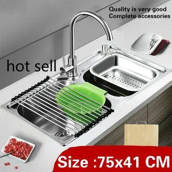 Product Name: Free Shipping High Capacity Wash Vegetables Vogue Kitchen Double Groove Sink Durable 304 Stainless Steel 75x41 CM