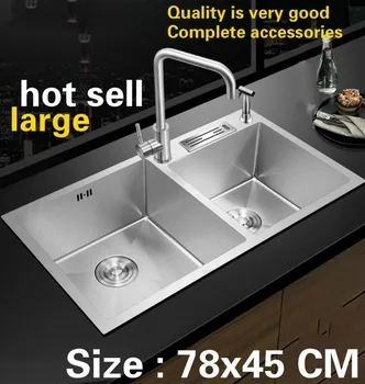 Product Name: Free Shipping Hot Sell Luxury Apartment Large Kitchen Manual Sink Double Groove Do The Dishes 304 Stainless Steel 78x45 CM