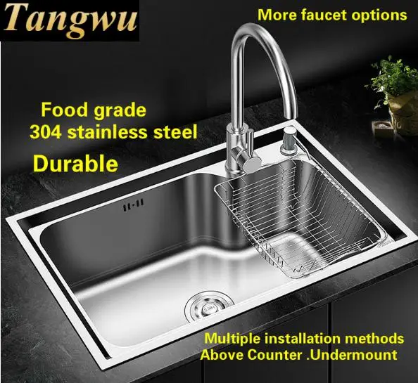 Best . (0% Off) Buy Free Shipping Hot Sell Luxury High Quality Kitchen Single Trough Sink Wash The Dishes 304 Food-grade Stainless Steel 680x450 MM Price Online.