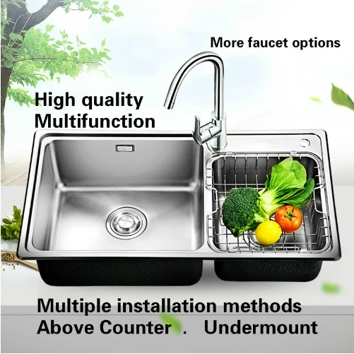 Best . (0% Off) Buy Free Shipping Kitchen Sink 0.8 Mm Durable Food Grade 304 Stainless Steel Standard Hot Sell Big The Double Groove 79x44 CM Cheap Online.