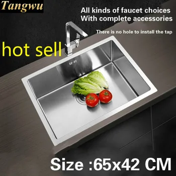 Special Offer Free Shipping Kitchen Sink Food Grade 304 Stainless Steel Thick Hand Made Single Slot Hot Selling 65x42 CM Discount 0% Today!