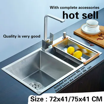 Special Offer Free Shipping Kitchen Sink Double Trough 304 Stainless Steel Durable Hand Made Hot Sell 720x410 / 750x410 MM Discount 0% Today!