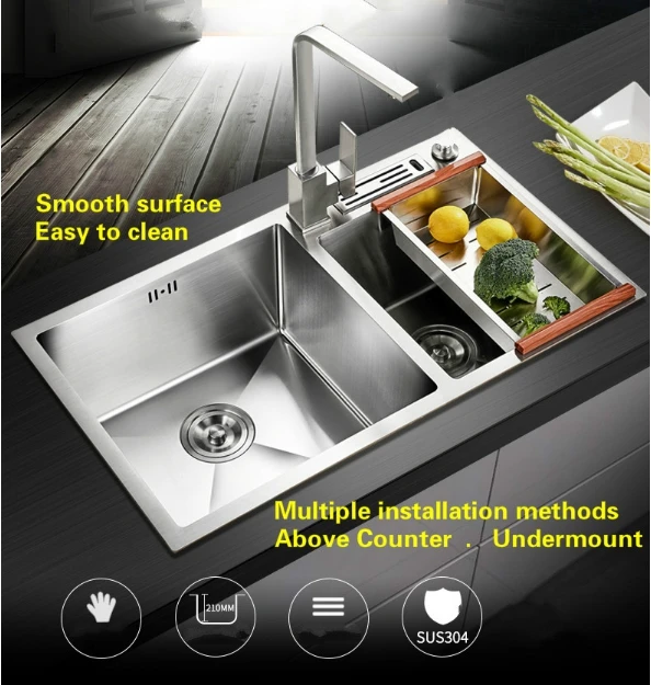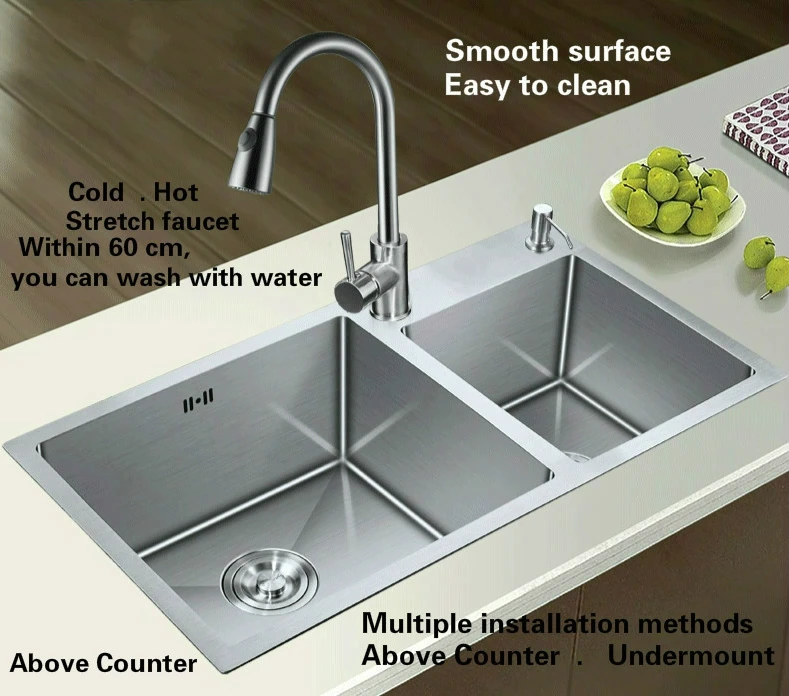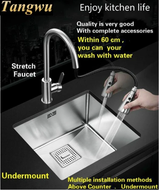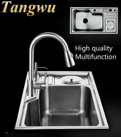 Best . (0% Off) Buy Free Shipping Apartment Luxury Kitchen Single Trough Sink Stretch Faucet Food Grade 304 Stainless Steel Hot Selling 780X430 MM Price Online.