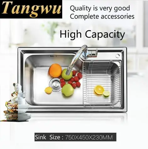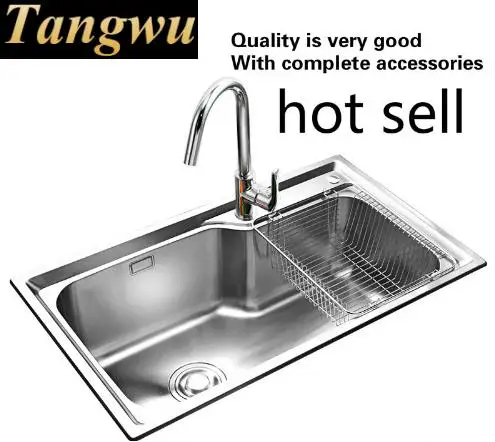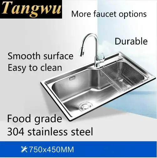Product Name: Free Shipping Home Luxury Wash Vegetables High Capacity Big Kitchen Single Trough Sink 304 Stainless Steel 75x45 CM