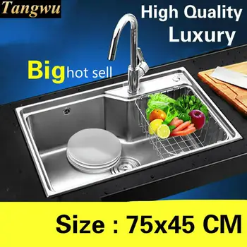 Special Offer Free Shipping Home Luxury Wash Vegetables High Capacity Big Kitchen Single Trough Sink 304 Stainless Steel 75x45 CM Discount 0% Today!