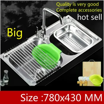 Product Name: Free Shipping Home Wash Vegetables Common Large Kitchen Double Groove Sink 304 Stainless Steel Luxury 78x43 CM