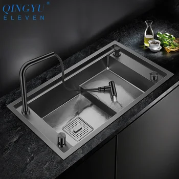 Best . (50% Off) Buy QINGYU ELEVEN Stepped Nanometer Sink 304 Stainless Steel Handmade Sinks 4mm Thickness 220mm Depth Large Size Kitchen Sinks Price Online.