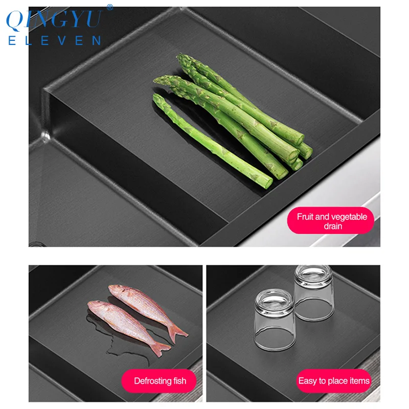 Product Name: QINGYU ELEVEN Stepped Nanometer Sink 304 Stainless Steel Handmade Sinks 4mm Thickness 220mm Depth Large Size Kitchen Sinks