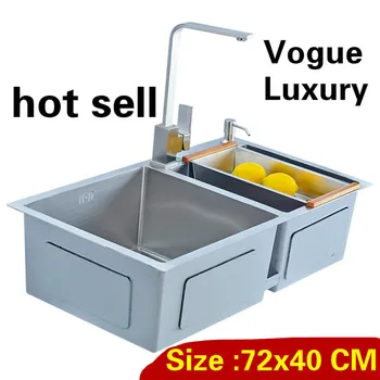 Product Name: Free Shipping Apartment Kitchen Manual Sink Double Groove Food Grade 304 Stainless Steel Vogue Hot Sell Small 72x40 CM