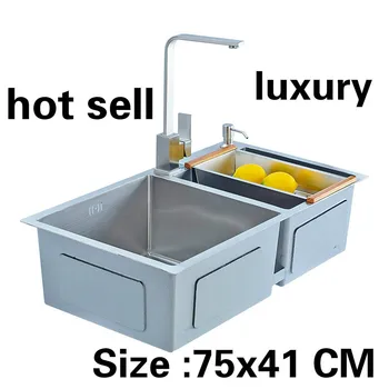 Product Name: Free Shipping Apartment Luxury Kitchen Manual Sink Double Groove Do The Dishes Food Grade 304 Stainless Steel Hot Sell 75x41 CM