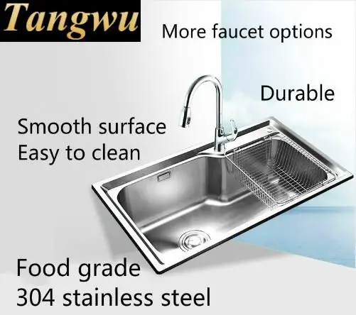 Special Offer Free Shipping Apartment Luxury Kitchen Single Trough Sink 304 Food-grade Stainless Steel Hot Sell 67x43/75x45 CM Discount 0% Today!