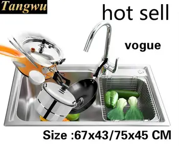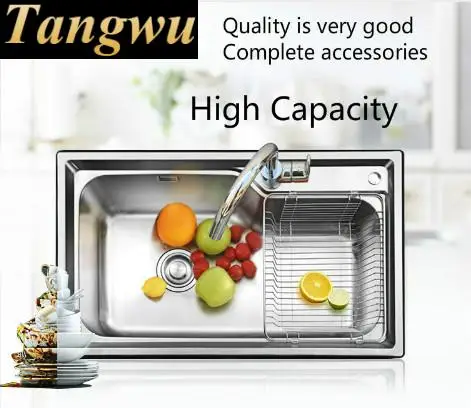 Product Name: Free Shipping Apartment Luxury Kitchen Single Trough Sink 304 Food-grade Stainless Steel Hot Sell 67x43/75x45 CM