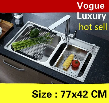 Product Name: Free Shipping Apartment Vogue Wash Vegetables High Quality Kitchen Double Groove Sink 304 Stainless Steel 77x42 CM