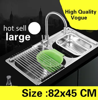 Special Offer Free Shipping Apartment Wash Vegetables Large Kitchen Double Groove Sink 304 Stainless Steel Luxurious Hot Sell 820x450 MM Discount 0% Today!