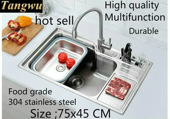 Product Name: Free Shipping Fashionable Kitchen Sink 0.8 Mm Thick Food Grade 304 Stainless Steel Single Slot Hot Sell 750x450 MM