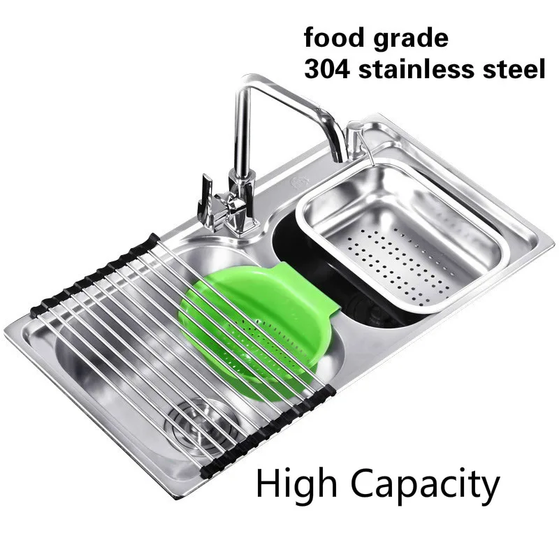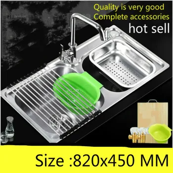 Product Name: Free Shipping High Capacity Wash Vegetables Common Large Kitchen Double Groove Sink 304 Stainless Steel Luxury 82x45 CM