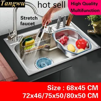 Special Offer Free Shipping Home Kitchen Single Trough Sink Stretch Faucet Wash Vegetables 304 Stainless Steel 68x45/72x46/75x50/80x50 CM Discount 0% Today!