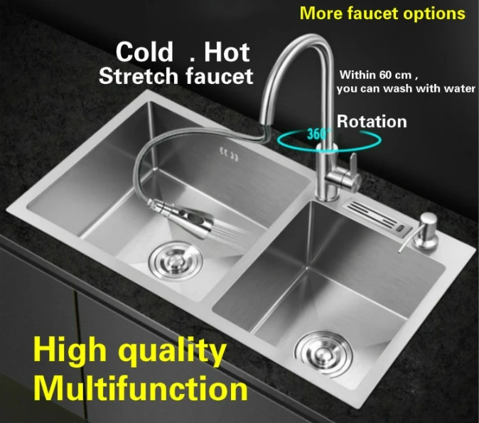 Special Offer Free Shipping Home Luxury Kitchen Manual Sink Double Groove Wash Vegetables High Quality 304 Stainless Steel Hot Sell 72x40 CM Discount 0% Today!