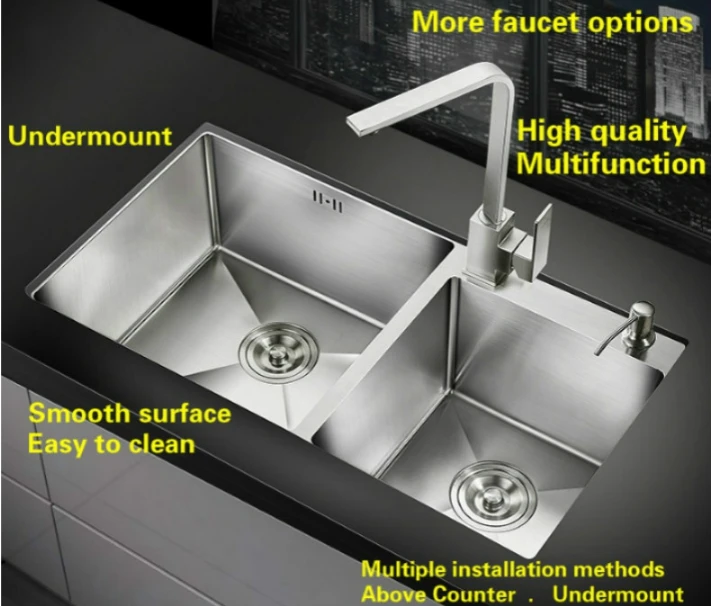 Best . (0% Off) Buy Free Shipping Household Vogue Kitchen Manual Sink Double Groove 304 Food Grade Stainless Steel Hot Sell 750x410 MM Price Online.
