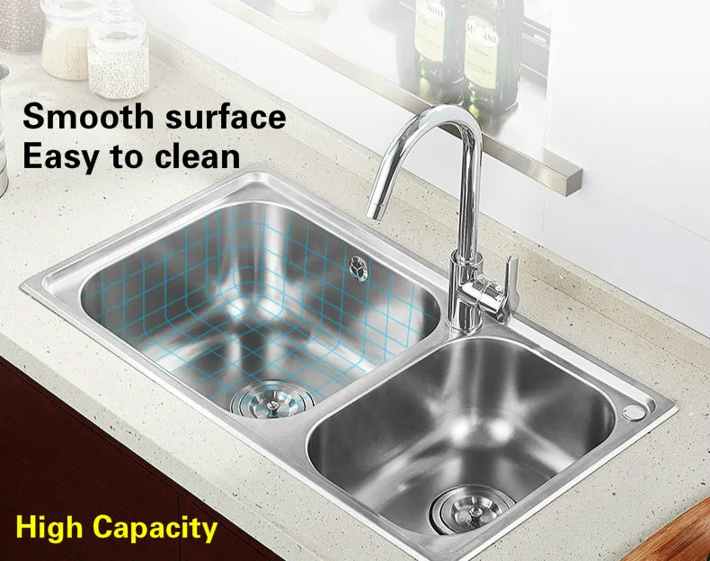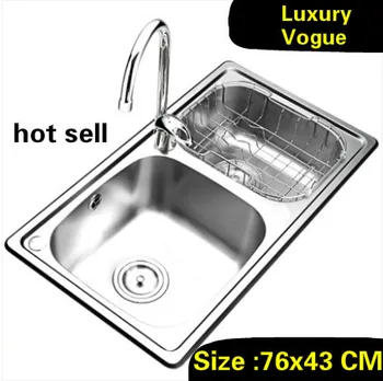 Product Name: Free Shipping Luxurious Small Kitchen Double Groove Sink Vogue Do The Dishes Food Grade 304 Stainless Steel 760x430 MM