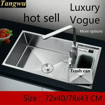 Product Name: Free Shipping Luxury Kitchen Manual Sink Single Trough Durable Standard Food-grade 304 Stainless Steel Hot Sell 72x40/78x43 CM